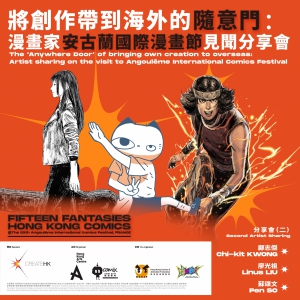 香港藝術中心(動漫基地)在香港特別行政區政府「創意香港」贊助下,與香港動漫畫聯會攜手合作,於今年1月帶領15部在第一屆「港漫動力」—香港漫畫支援計劃下出版的原創中/長篇漫畫,參展法國第50屆「安古蘭國際漫畫節」。其中七部作品的主筆親身赴法安古蘭漫畫節進行交流。漫畫家亦與來自世界各地的出版人洽談授權,成功向外拓展!