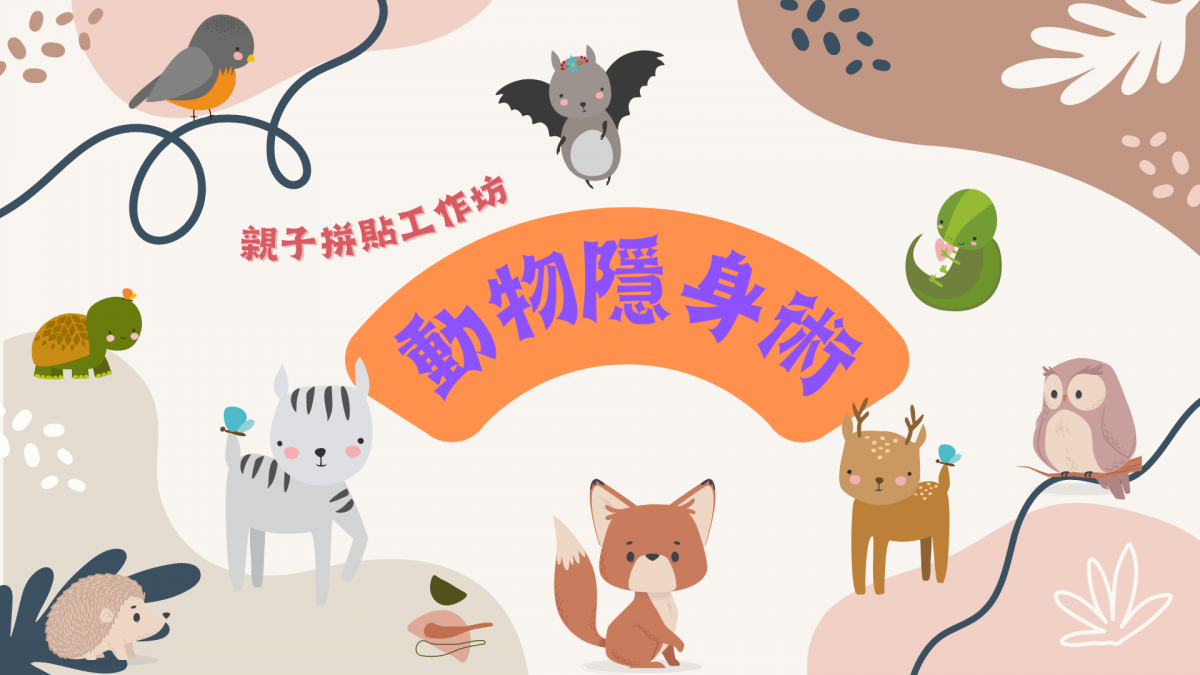 大自然裡隱藏著許多偽裝高手!有些動物會改變身體的顏色,與周圍環境融為一體,有些動物則變身模仿其他動物,來迷惑敵人或捕食獵物。工作坊將透過音樂律動及遊戲,帶大朋友小朋友認識動物的形態、習性及「保護色」的觀念。最後,運用自然素材,以拼貼方式,創作立體場景及動物,讓動物通通躲起來!