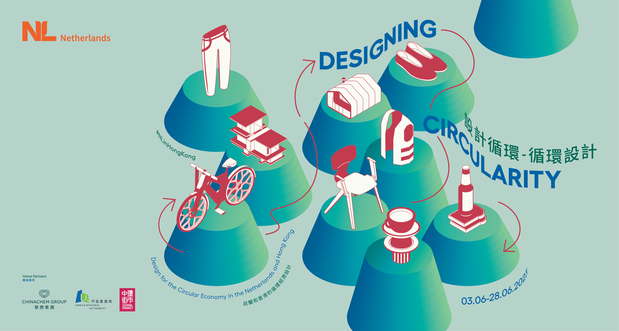 由荷蘭駐香港總領事館主辦的《設計循環 · 循環設計 – 荷蘭和香港的循環經濟設計》展覽,將於6月3日至28日在中環街市對公眾開放,展出多項來自荷蘭及香港的環保及技術,涵蓋建築、時尚和日常用品。展期內還會舉辦多場工作坊及講座。