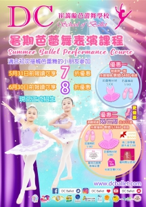 另外,完成8堂暑期芭蕾舞班,除可獲本校頒發之修業證書外,亦有機會參加於柴灣青年廣場YStudio舉行的「DC舞出自信」暑期結業禮,更可直接銜接本校所舉辦之英國皇家芭蕾舞恆常課程。
