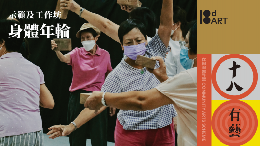 導賞示範及體驗工作坊曾參與「身體年輪」計劃的長者學員,經過培訓後由小助教化身成舞者,示範過往演出的選段,並由舞蹈藝術家帶領大家體驗身體律動的樂趣。舞蹈互動工作坊由舞蹈藝術家帶領大家進行簡單又輕鬆的身體律動練習,並設「身體年輪」計劃的紀錄片,展示及分享在社區推行計劃的點滴。