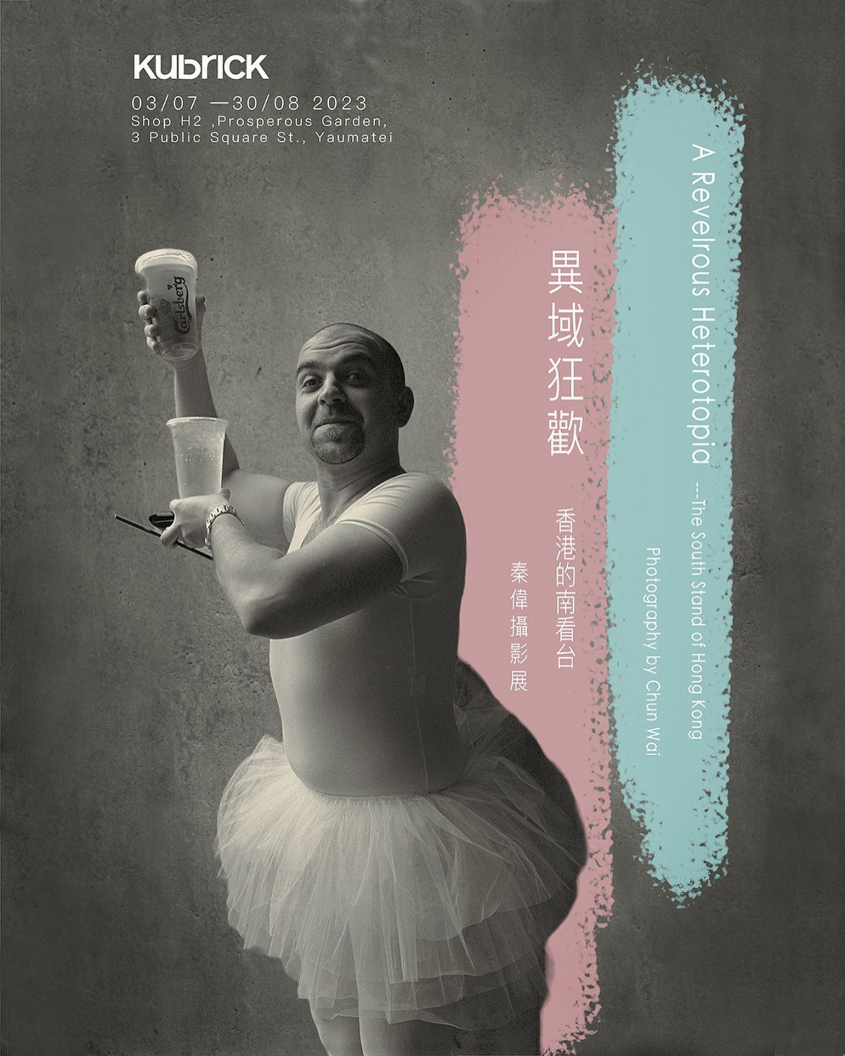 自1995年起的二十多個年頭裡,攝影師秦偉以嚴謹的影像觸覺,不懈地紀錄每年一度的香港國際七人欖球賽上的小段落,鏡頭聚焦於狂歡活動背後的積極意義,並從而提取其內在的隱喻及意涵。他巧妙地借用水泥牆的冰冷背景,以中灰階色調,緩緩地推動圖片的內在張力。讓人逗笑的人物角色,漫畫化的視覺元素,恍若來自某個不可確定的時空。