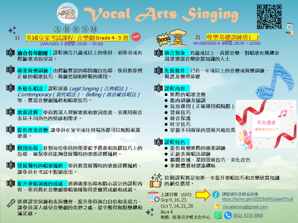 聲樂基礎訓練班(二) / 英國皇家音樂學院考試課程 - 音樂劇聲樂 Grade 4-5