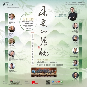 「未來的傳統——竹韻南曲.小集大雅」為竹韻小集二十周年誌慶樂季開幕節目,精選十首委約香港作曲家創作、具有本土特色之中樂室內樂作品,展示樂團繼承和開拓「香港中樂文化」的成果,其中八首作品是首次在香港現場演奏。節目更設有「演後藝人談」,邀請相關作品之作曲家現身說法,分享創作理念。