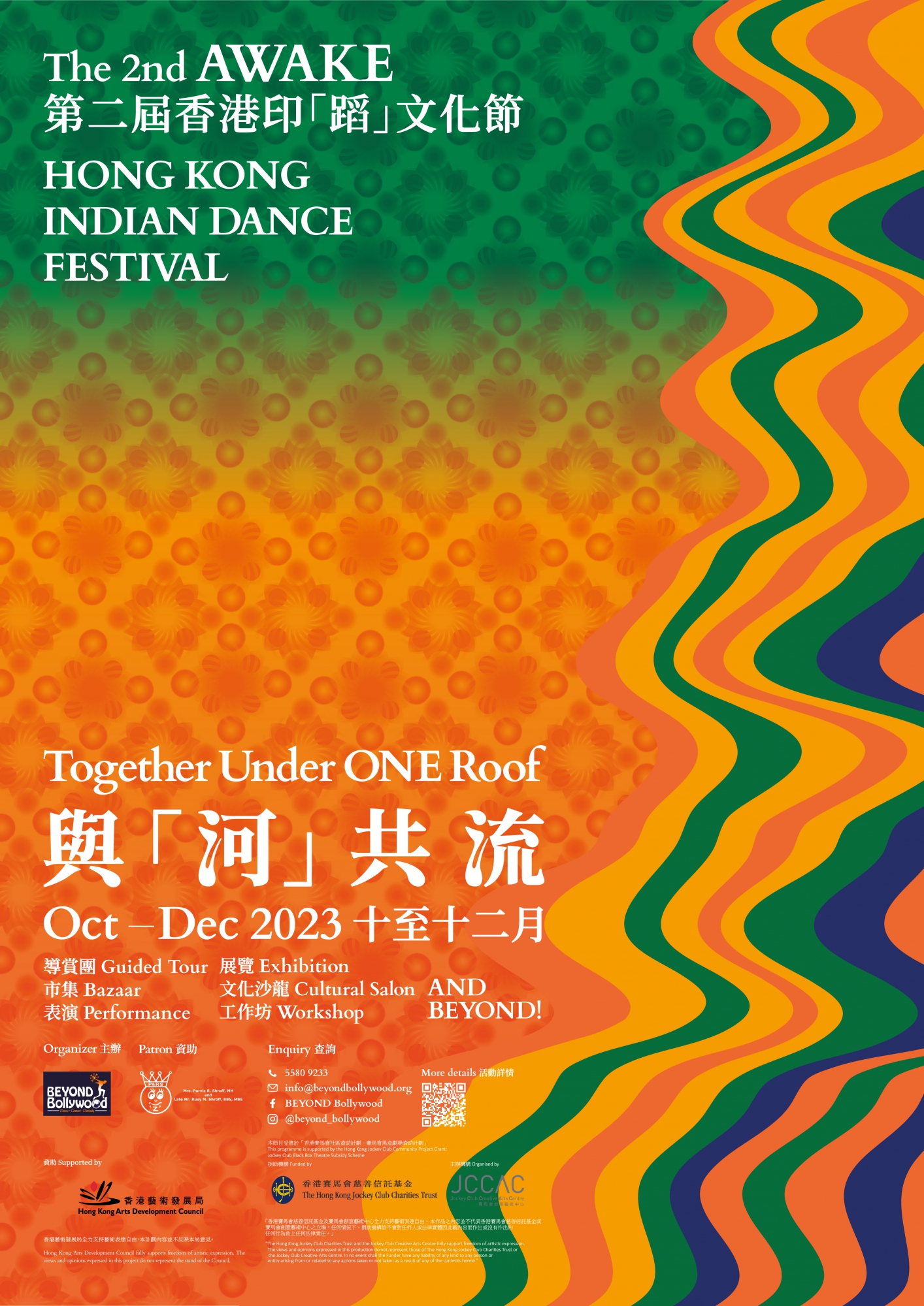 第二屆 AWAKE 香港印「蹈」文化節將於今年十至十二月再次舉行,由非牟利印度舞蹈機構BEYOND Bollywood主辦,橫跨三個月以「Together Under ONE Roof 與河共流」為主旨,超過20場活動多角度呈現印度和而不同的寶貴價值,創造跨界別藝術交流的機會。