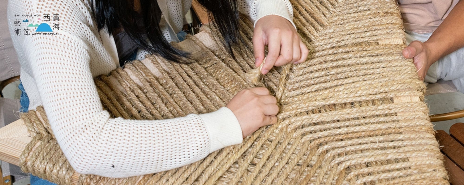 「織浪亭——繩藝工作坊」邀請公眾與村民一齊參與滘西洲「織浪亭」的休憩平台製作,體驗傳統繩編工藝。在漁船上或漁村裏,繩索的身影隨處可見。從栓船系帆,到製作漁網,漁民的生活早已離不開繩索。織浪亭以不同「繩」作爲材料,展現繩的獨特魅力。製成品將會成爲織浪亭的一部分,讓市民可以在滘西洲石灘一邊感受海風,一邊欣賞瑤柱石與周邊的自然環境,享受海島的日出日落。
