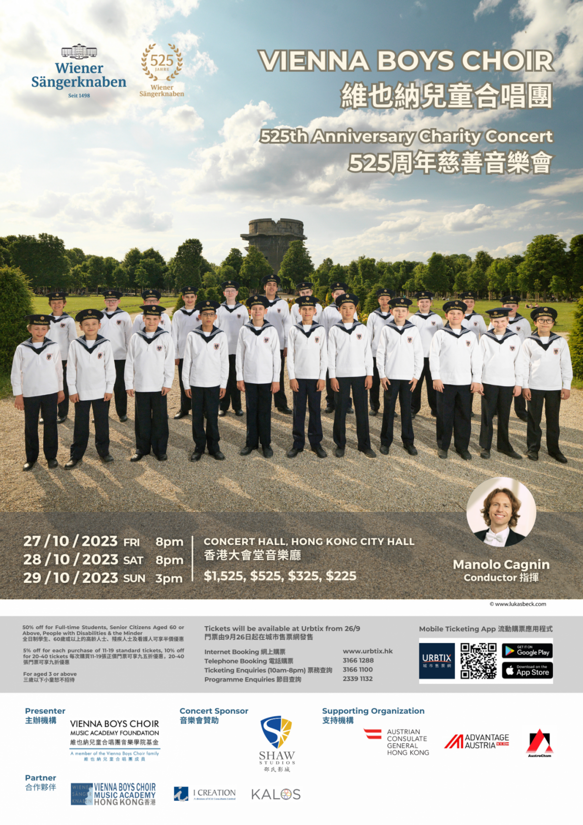 享譽世界的維也納兒童合唱團今年慶祝其525週年紀念,現誠邀香港的合唱團員參與2023年10月27/28/29日在香港大會堂舉行的「維也納兒童合唱團525週年慈善音樂會」,與維也納兒童合唱團同台演出。