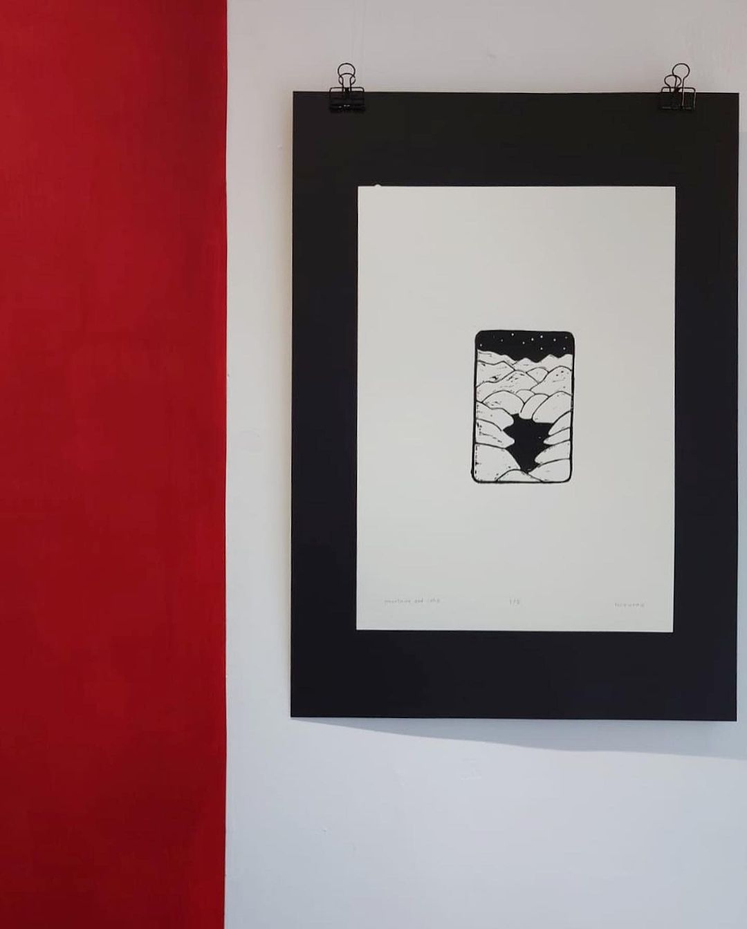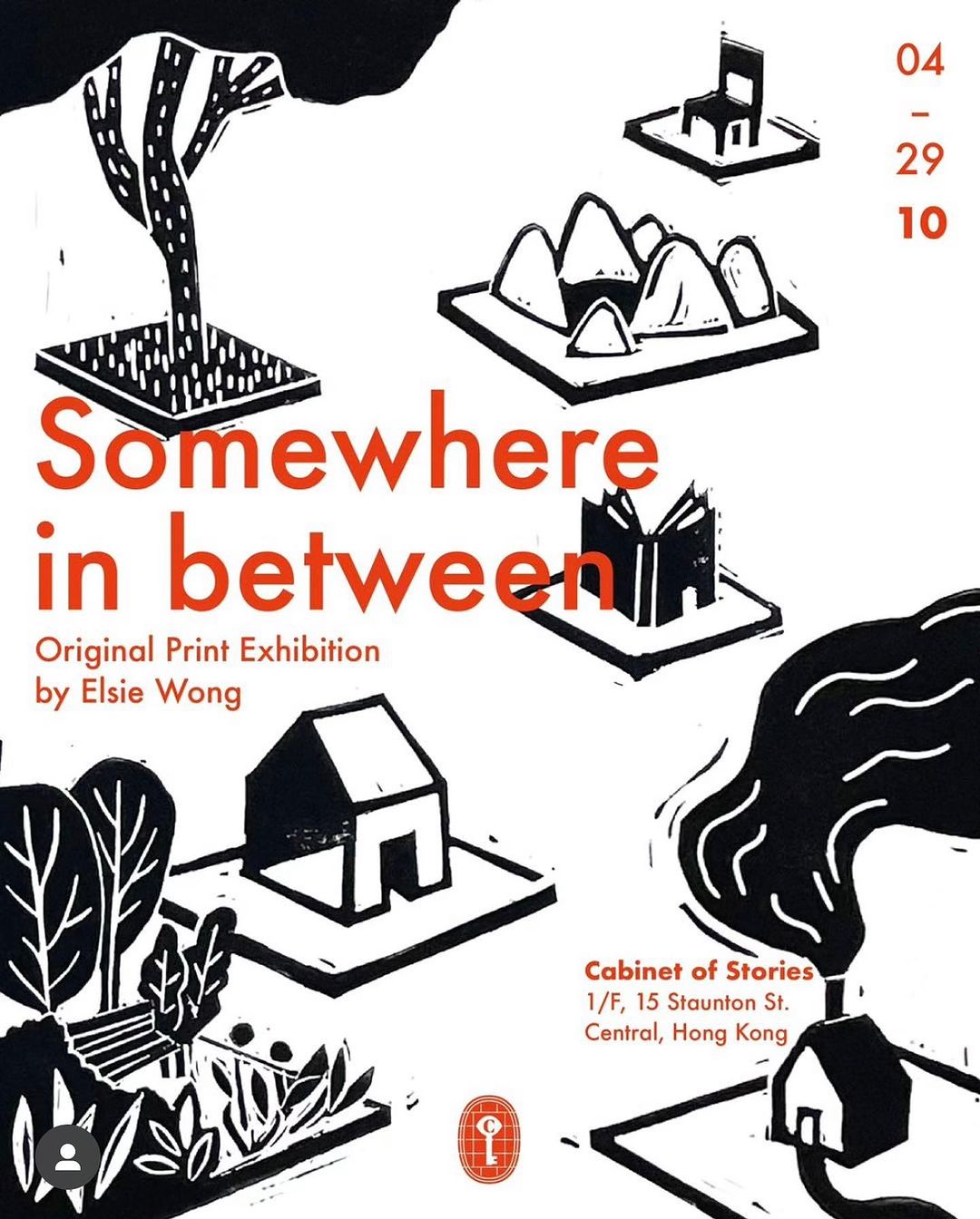 「《Somewhere in between》是一系列雕刻版畫,記錄了我從一個目的地到另一個目的地的旅程,透過窗框展現了我的獨特視角。」- Elsie Wong