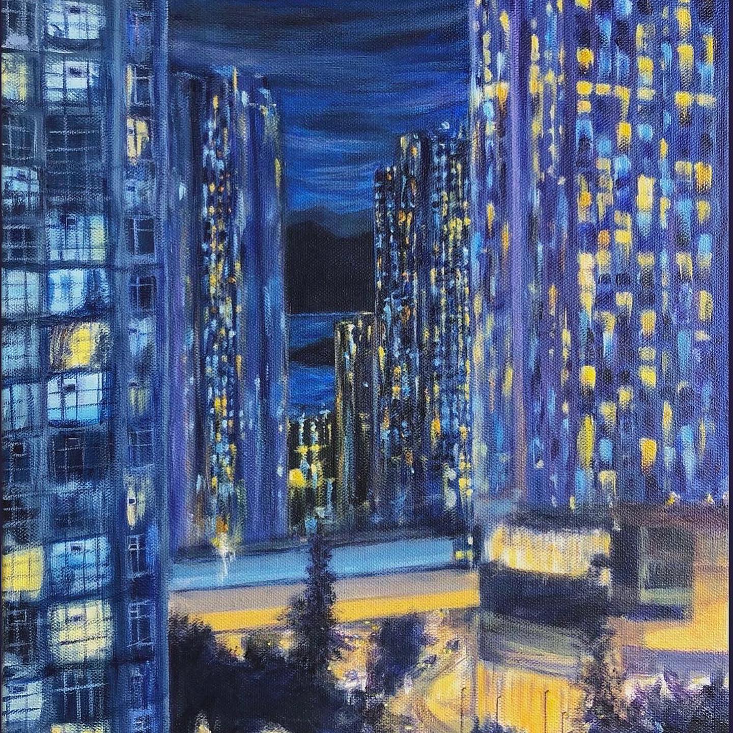 創作媒介主要為塑膠彩,其畫作多以溫和的對比色描繪城市的面貌,以風景訴說故事及內在情感。