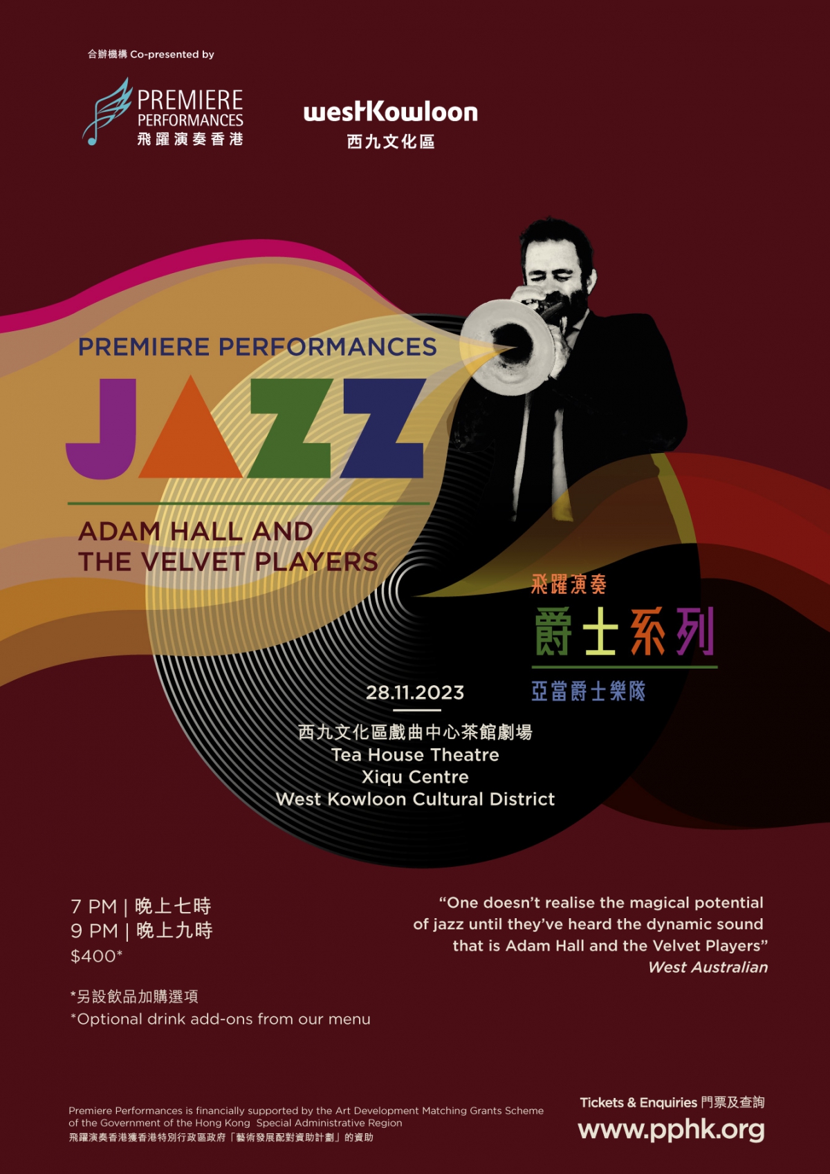 來自澳洲的亞當爵士樂隊(Adam Hall and The Velvet Players)將於11月28日(星期二)來到戲曲中心茶館劇場,以復古風格爵士歌曲把觀眾帶到1950年代的美國拉斯維加斯,重現當年Louis Prima、Rat Pack等爵士巨匠在不夜城登台獻藝的熱鬧場景。