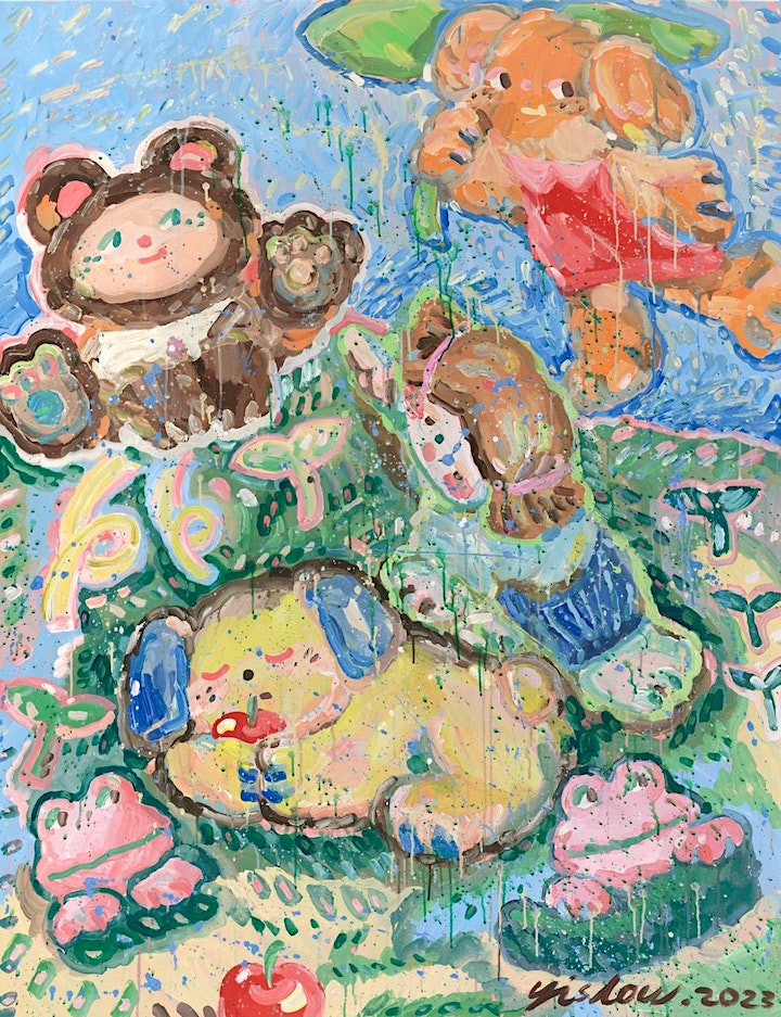 Thriving throughout the year 2023, we have chosen the solo exhibition of this incredibly talented artist, Yislow, as the grand finale. This exhibition in Hong Kong provides the first opportunity to showcase the artist's numerous paintings and installation works, characterized by their enchanting and fairytale-like expressions born from a rich imagination. As the year comes to a close, we warmly invite you to immerse yourself in this magical and dreamlike space, where vibrant colors and soft, warm textures create a joyful journey to be walked along together.