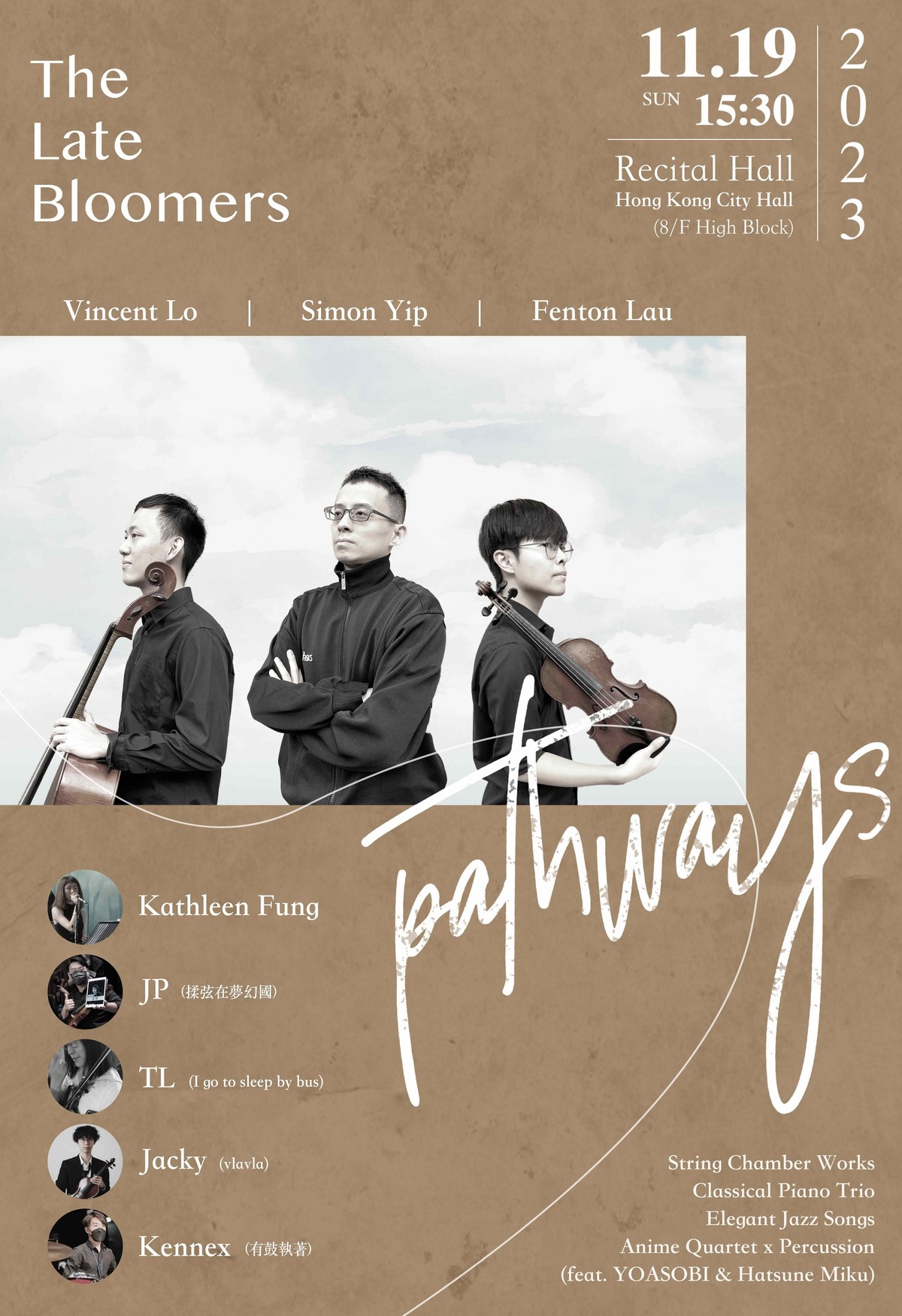 踏入The Late Bloomers的第四個年頭,一眾遊走不同音樂及興趣的樂手,將會以鋼琴、弦樂、聲線、敲擊,帶來一系列古典、近代、爵士以至動漫作品。