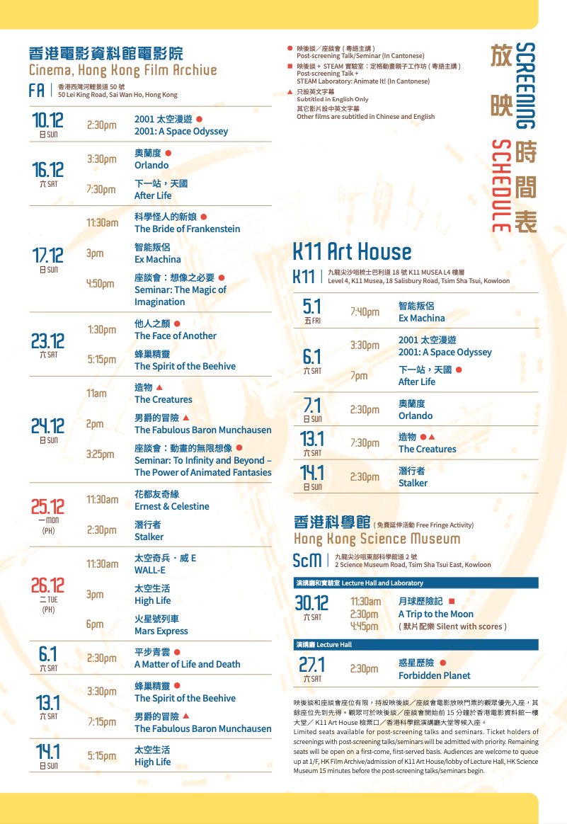 康文署電影節目辦事處舉行「#打開想像電影節」(10/12 – 27/1) 以想像為主題,精選17部情節天馬行空的作品,激發觀眾想像、啟發更多可能。想像力也是驅動力,教人克服恐懼,燃起希望。部份場次設粵語主講映後談和座談會。