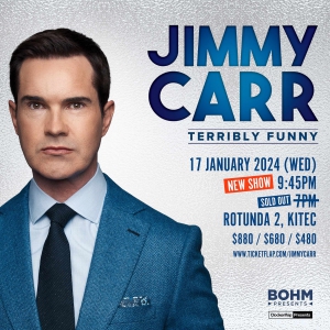英國喜劇演員 Jimmy Carr的專場棟篤笑表演將於 2024年1月17日,於九龍灣國際展貿中心展貿廳Rotunda 2 舉行。