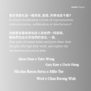 計劃撮合了四組聲音創作人與寫詩的人,聲音創作人錄製一段音軌,接著詩人把聲音譯成詩作。詩人沒有與聲音創作人溝通,純粹透過聆聽音軌,把感覺、故事與見解透過文字與寫作呈現出來。然後,詩作再回到聲音創作人感受及解讀,最後造出一件完整的樂音作品,以化成多媒體的方式在展覽中呈現。