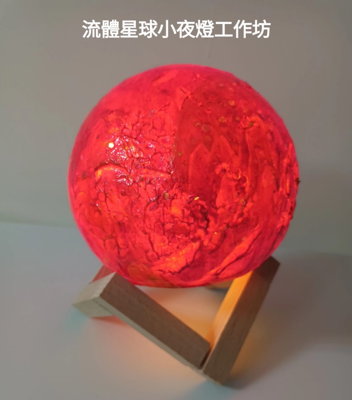 你心目中的星球是怎樣的?你喜歡的顏色又是怎樣的?一盞在晚上可以陪伴你的小夜燈,讓你親手創作出來, 加上閃耀的金粉色彩,更可令你夢想成真。