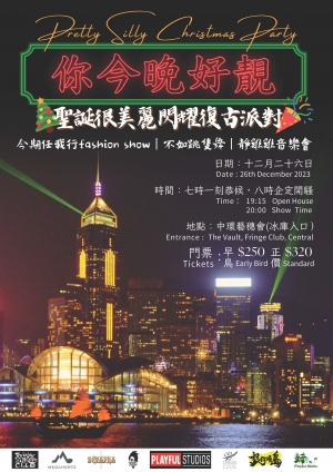 星光燦爛的紅地毯,閃耀藝穗會的每一角落,好玩製作打造最意想不到的聖誕派對。好玩製作呈獻:「Pretty Silly Christmas Party 你今晚好靚-聖誕很美麗閃耀復古派對」,誠邀最靚的你,一同拆開這份聖誕禮物。演出環節包括:「今期任你行Fashion Show 」「不如跳隻舞」「靜雞雞音樂會」