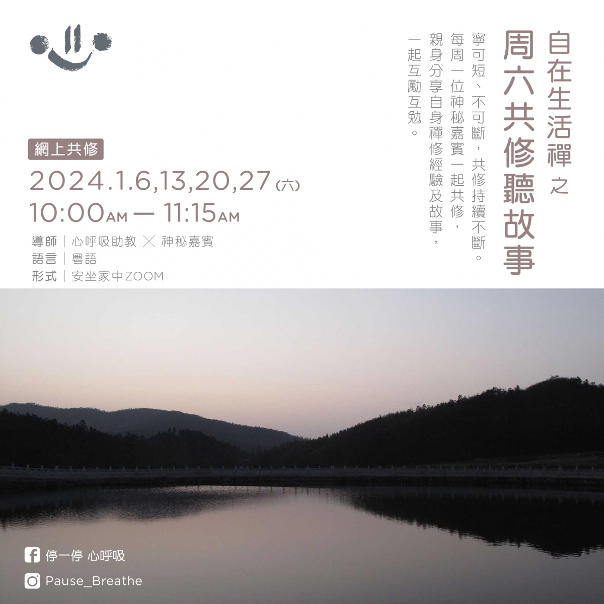 當你發現生命中愈來愈少的時間給自己,愈來愈多的時間給工作,愈來愈強的渴望想自由,卻換來愈來愈沉重的壓力時,即是說你的身心都已經被擠壓得喘不過氣來了。每周由一位神秘嘉賓,親身分享自身禪修經驗及故事,一起停一停用心感受呼吸。