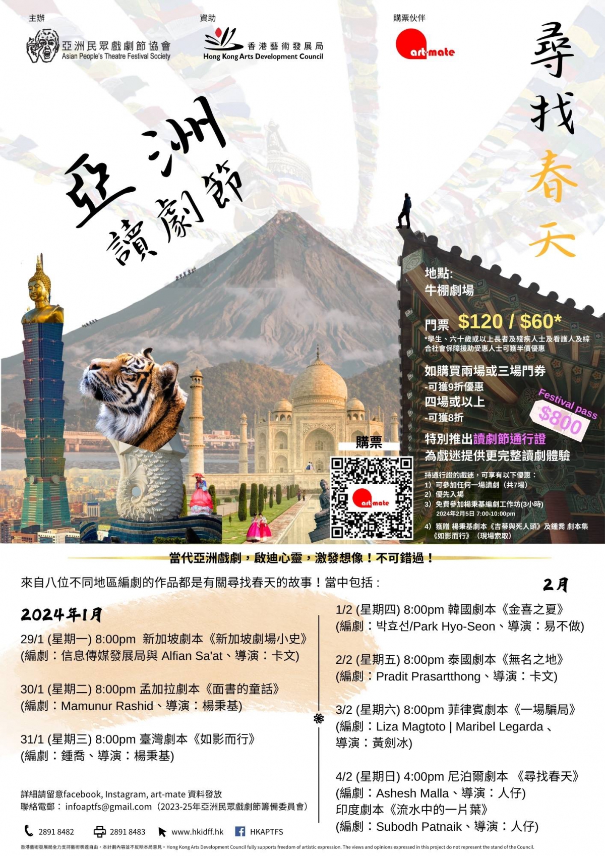 是次演讀的劇本來自印度和尼泊爾,並將兩劇整合為一場展演《流水中尋找春天的一片葉子》。《流水中的一片葉 》改編自印度知名文學家的一篇小说,故事有關貧民夫妻在殖民主義者退敗後仍然面對的困境。在大環境的變遷下,春天的到來並非理所當然。有人等待,有人尋找,更多人接受了春天的缺席。傷春悲秋只是徒勞,遠走他處或許更容易找到春天。「夏蟲不可以語冰」一幅春日的寫生說不定讓生處夏秋冬的人得著希望、想像與啟迪。