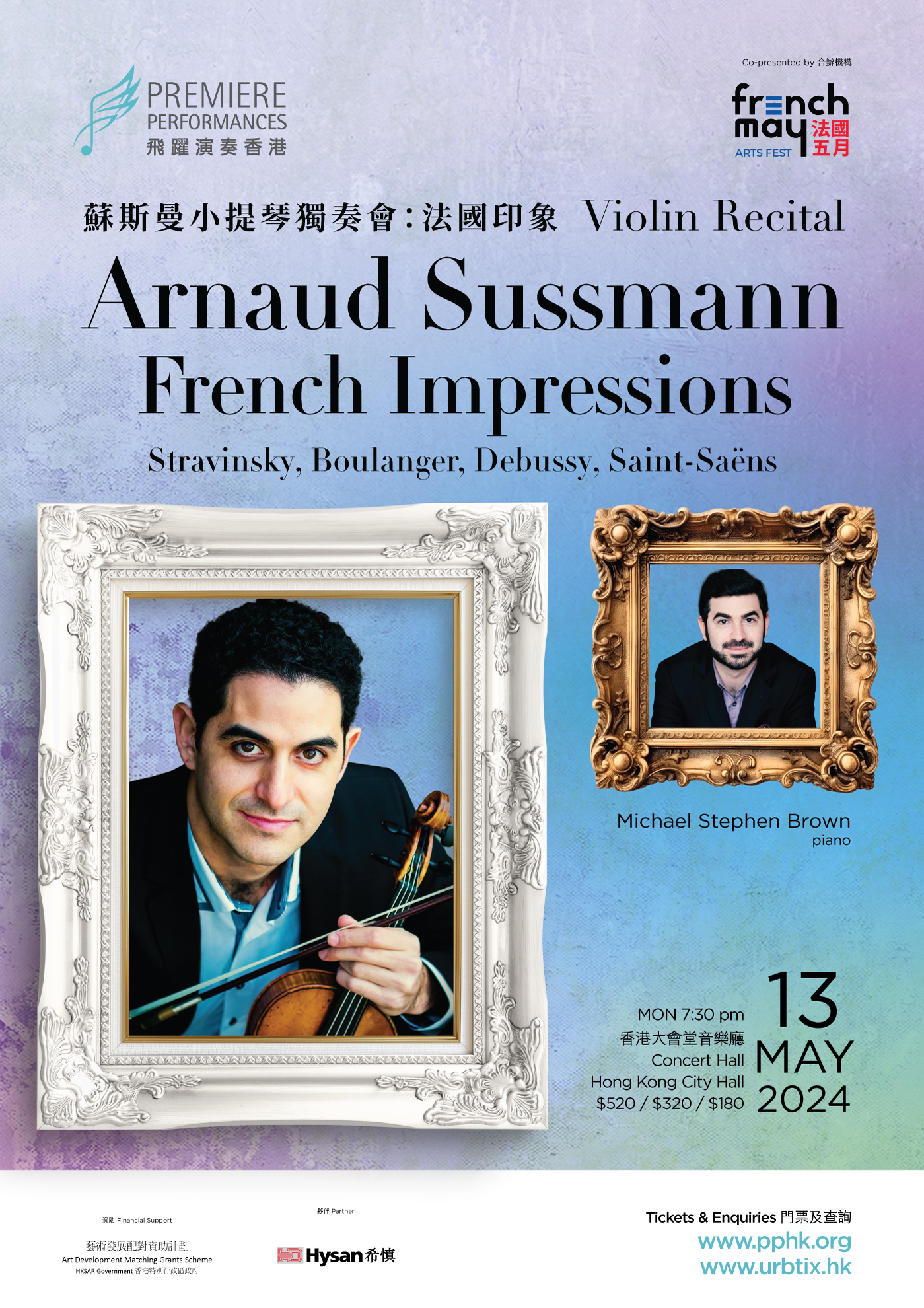 為慶祝法國五月藝術節,蘇斯曼和布朗將帶領我們踏上一場法國靈感之旅。他們的曲目涵蓋了德布西的印象派傑作、布朗傑的引人入勝的作品、聖桑的迷人旋律等,將為香港觀眾奏出一場法國音樂的靈魂。