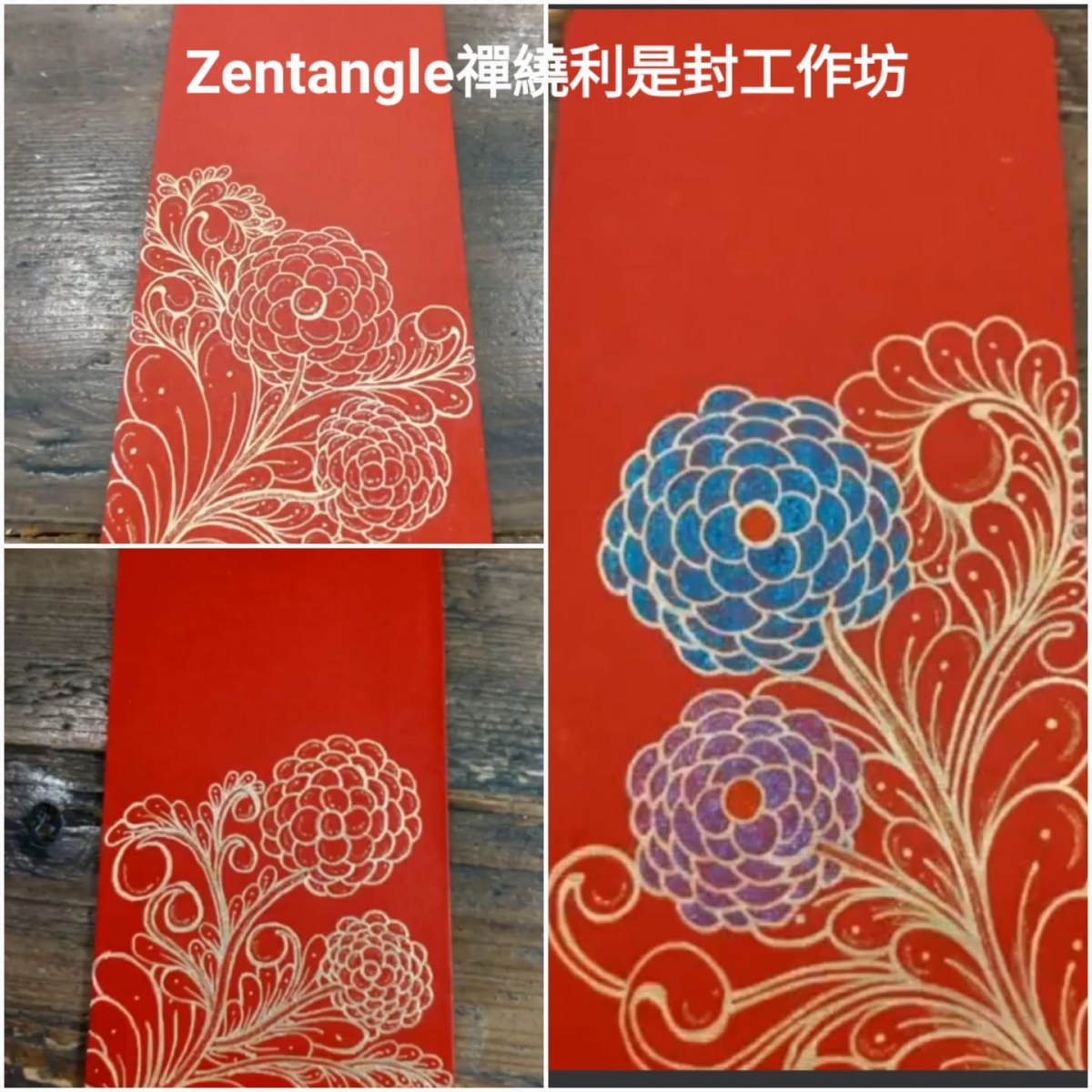 「紅包」泛指包著錢幣的紅紙封套,派紅包是中國新年的一種習俗。而廣東人習慣把紅包稱為「利是」,又可寫作「利事」、「利市」、「勵事」等,取其吉利之意。今趟來一次中西合璧crossover,把美國的禪繞畫,用金筆畫在紅色的利是封上。