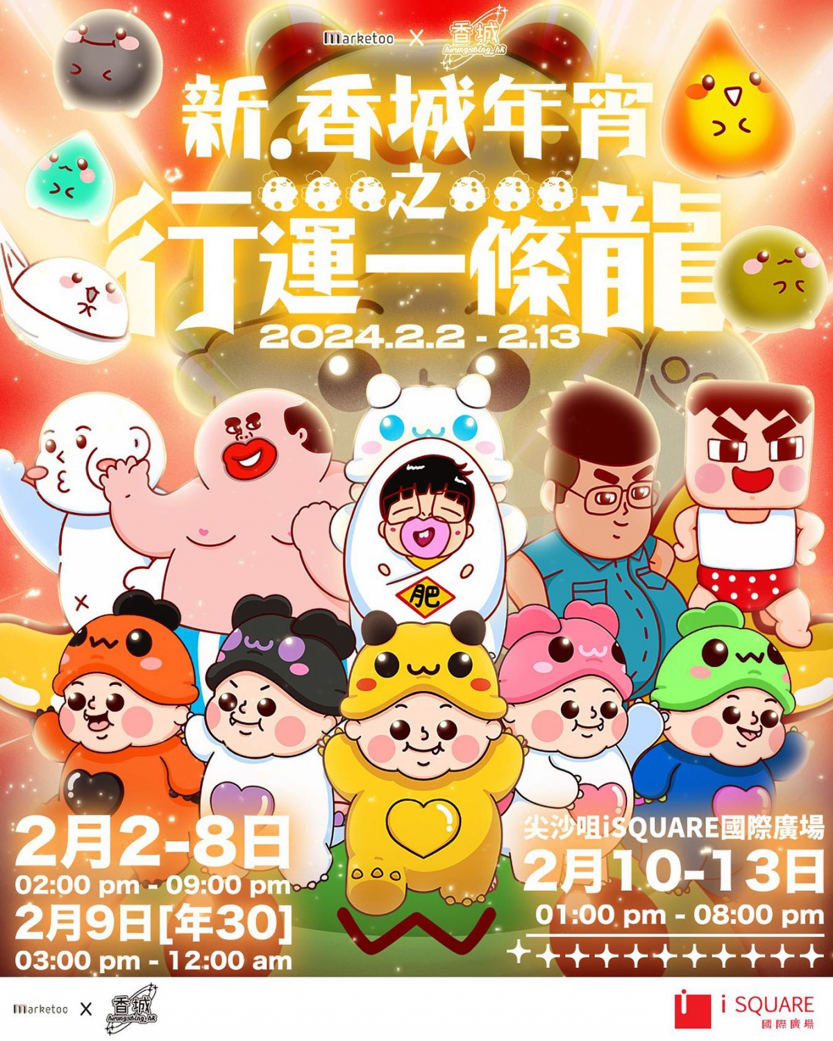 萬眾期待嘅香城年宵今年選址人流極旺既尖沙咀,相信會係區內最大型年宵!今年香城年宵主題係「新 · 香城年宵之行運一條龍」 加入電影元素,絕對令你耳目一新!!除招募本地設計或手作品牌,亦特別開放選物品牌報名未報名嘅你要把握機會了₍ᐢ⸝⸝› ̫ ‹⸝⸝ᐢ₎一齊參與一年一度嘅熱鬧年宵!iSQUARE年宵参與名單Cheeky Cheeky 厚面子大麻成 東尼電機肥姨姨DDEDOh…little sweet