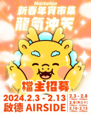 今次Marketoo舉辦「龍氣沖天」新春年宵巿集 將會同大家一齊喺啟德AIRSIDE 歡渡佳節!希望新場地可以為大家帶嚟驚喜( ˘꒳˘)今次市集繼續同時招募選物品牌同本地設計或手作品牌,俾大家喺享受新春氣氛嘅同時,更可以支持唔同類型既本地品牌呀୧꒰´꒳`꒱૭✧︎