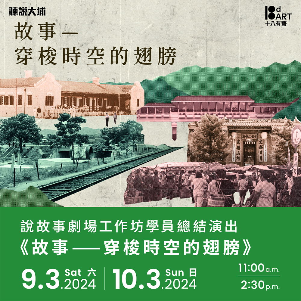 《聽說大埔》2023-2024說故事劇場工作坊的學員,將化身成說書人,帶領你遊歷大埔四道風景,品嚐此地不同的生活味道,乘著故事的翅膀穿梭時空,同闖大埔的過去、現在與未來。