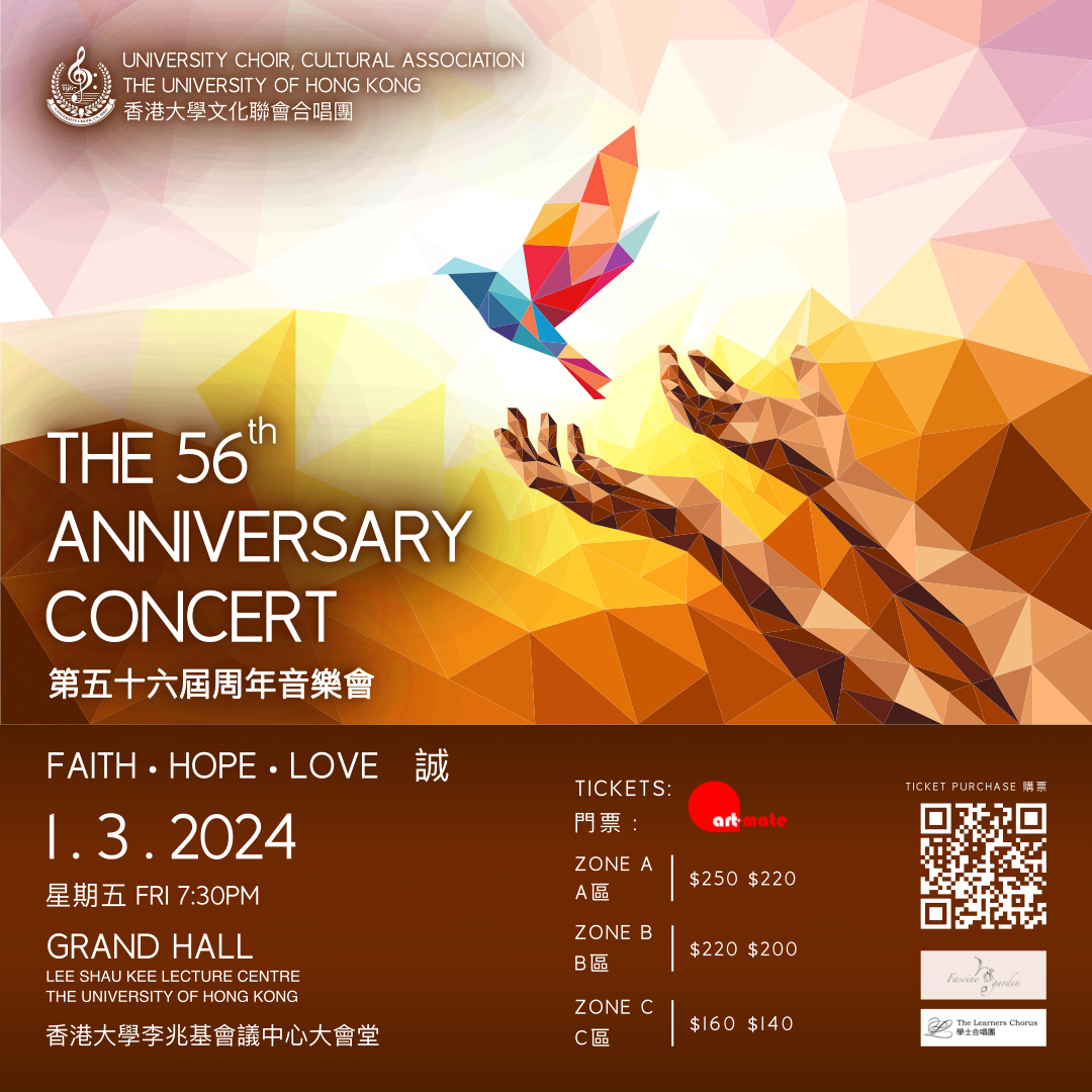 University Choir, CA, HKU is a non-profitable fully student-run organisation. Founded in 1967, the Choir has gathered numerous experienced and dedicated singers from diverse backgrounds, providing a stage for choral music enthusiasts to excel and connect.