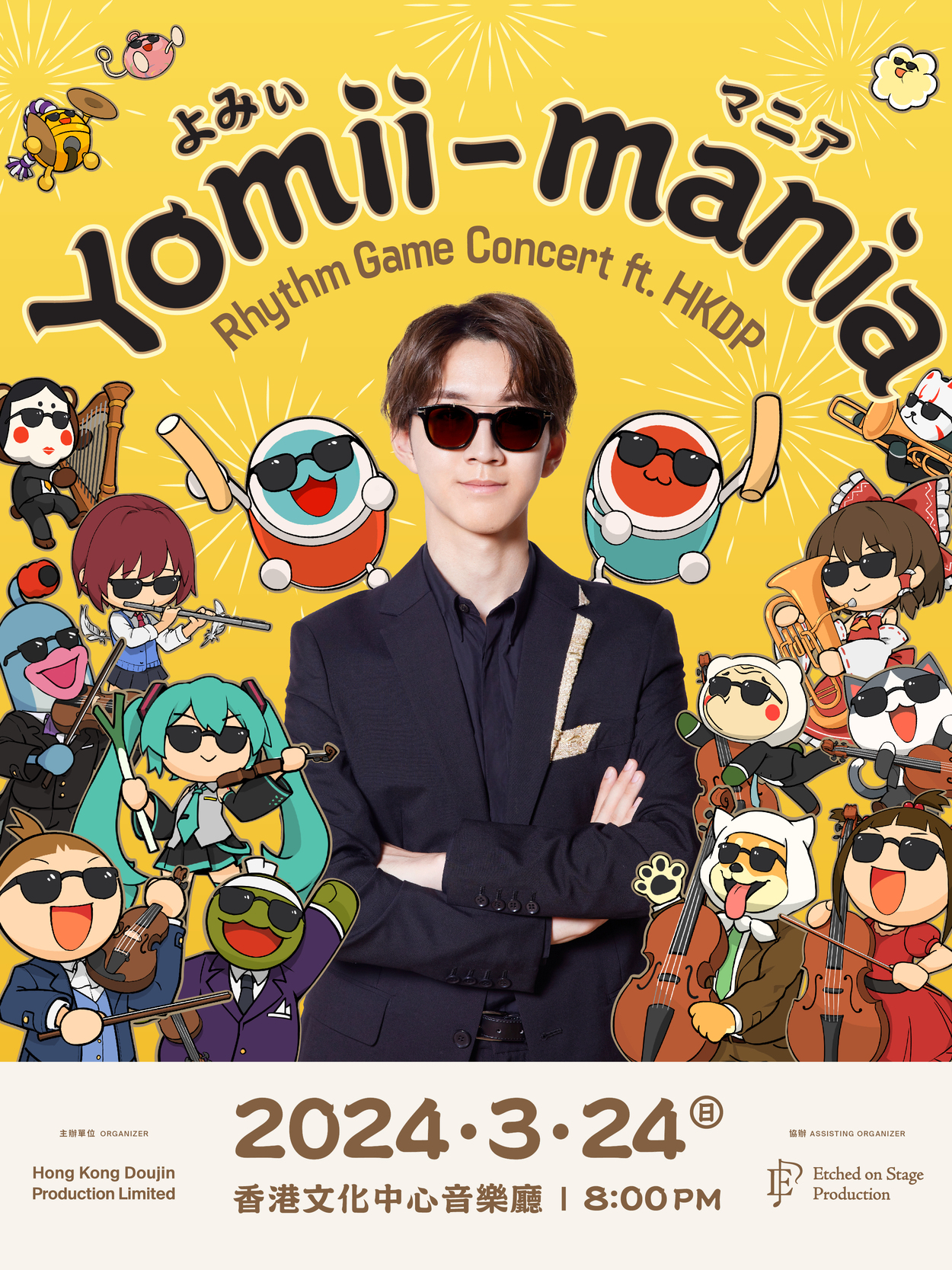 Yomii-mania 由日本人氣鋼琴 YouTuber よみぃ (Yomii) 主持,聯同香港同人管弦樂團,改編及演奏一系列音樂遊戲內的經典樂曲,同時邀請觀眾跟著節拍敲響太鼓,反轉整個音樂會觀賞體驗。