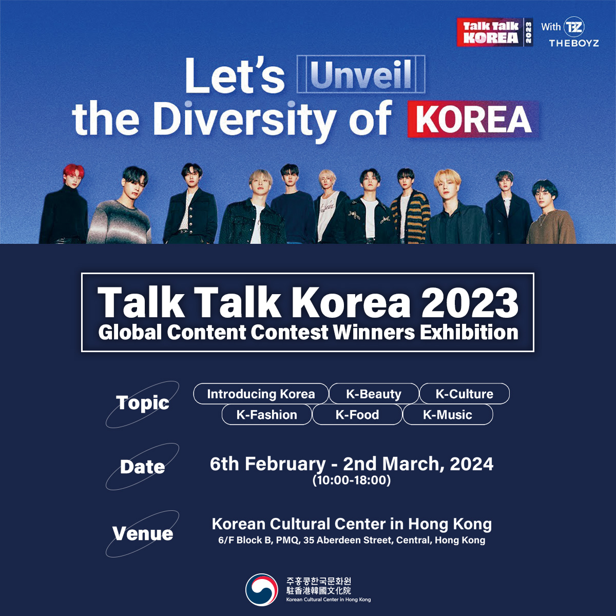 Talk Talk Korea 2023由韓國文化體育觀光部海外文化弘報院主辦,征集了全球韓流粉絲的創意作品。粉絲們以多種創意形式和主題,記錄他們所認識的韓國。