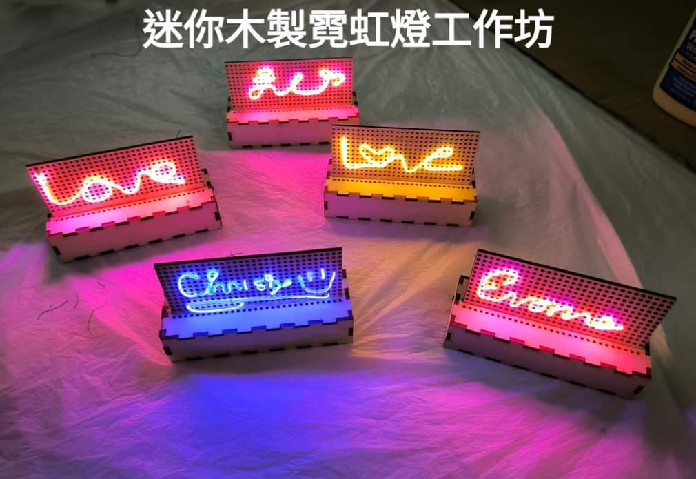 此工作坊製作的產品是由導師獨立設計的,材料選用特別的發光線 ( 非一般用的冷光線 ),及使用以鐳射切割而成的木板。參加者在導師的帶領下,自行接駁電線及電子零件,學習焊接技巧,並會了解當中的電工原理。