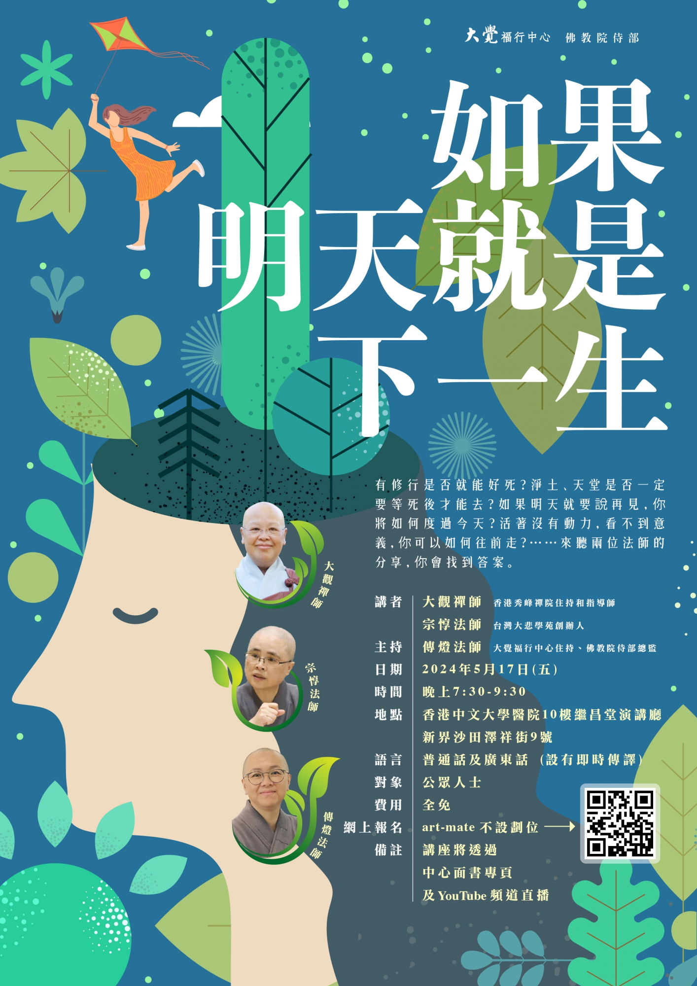 有修行是否就能好死?淨土、天堂是否一定要等死後才能去?如果明天就要說再見,你將如何度過今天?活著没有動力,看不到意義,你可以如何往前走?⋯⋯來聽兩位法師的分享,你會找到答案。
