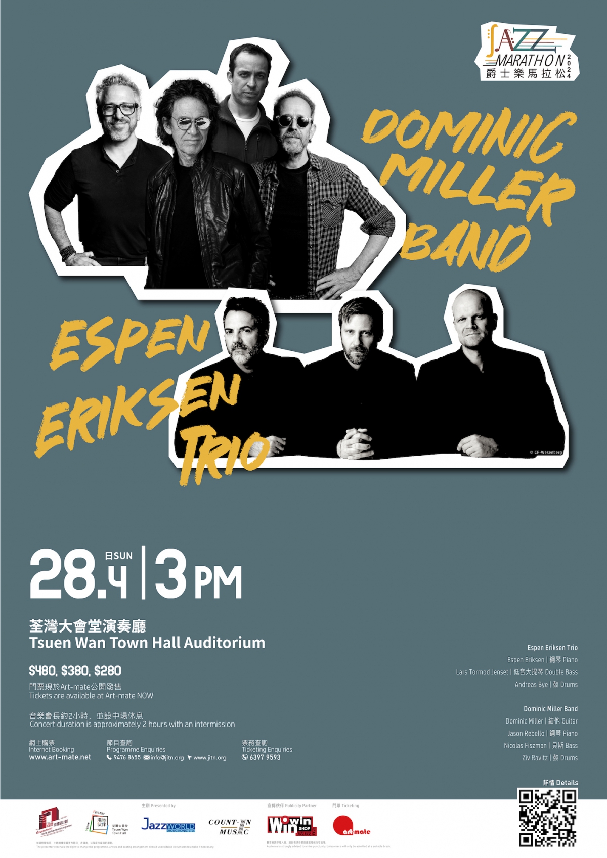 在爵士音樂馬拉松2024的最後一天,迎接Espen Eriksen Trio及Dominic Miller Band的壓軸演出!