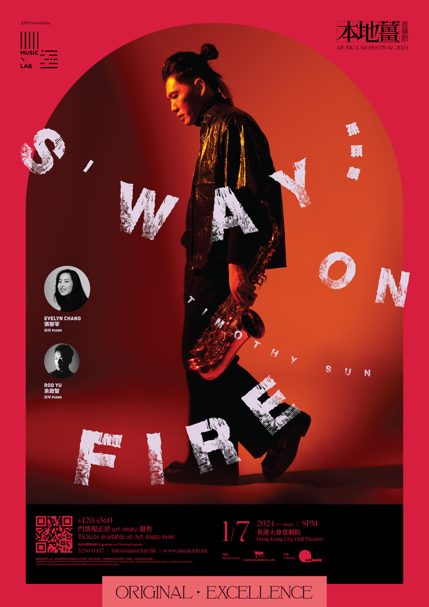 歡迎來到「S'way on Fire」,讓我們一同期待色士風樂手孫穎麟(Timothy Sun)在舞台上的炙熱演出!他將帶來一系列在香港難得一聽的古典色士風曲目,為節目增添驚喜的元素。準備好沉浸在他獨特的音樂風格和表演中,讓Timothy的音樂激情點燃你的心靈吧!