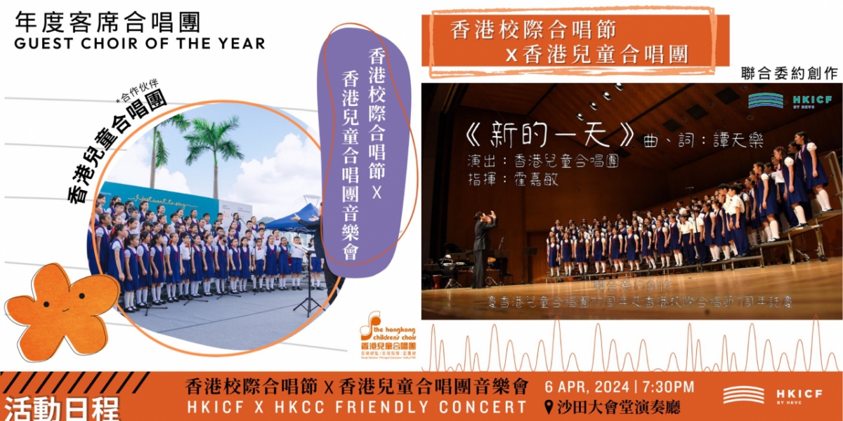 我們很榮幸邀請到香港兒童合唱團(香兒)與本港 4 間優秀的學校合唱團參與音樂會。香兒聞名世界,多年來孕育不少本港的合唱人才,亦為學界創作不少原創曲目及歌書,為合唱教育界作出莫大貢獻。適逢香兒 55 周年,是次音樂會成為一個難得的機會,與學校合唱團同台演出,亦讓學界以歌聲向香兒表達謝意。同時,音樂會設有大合唱環節,香兒與各校合唱團將在香兒音樂總監兼首席指揮霍嘉敏女士和香港校際合唱節藝術總監劉灝顯先生帶領下同台演出。