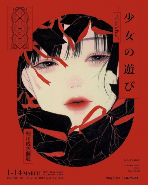 黑髮、紅唇、白皙的膚色、絲帶與蝴蝶結正交織一股強烈的女性魅力——日本藝術家「細川成美」將於3月1日至14日,與故事畫廊兼創意工作室ZtoryTeller 及藝術文化空間CEMENT 聯手合作,選址K11 MUSEA CEMENT舉行香港首場個人藝術展覽「少女の遊び 」!