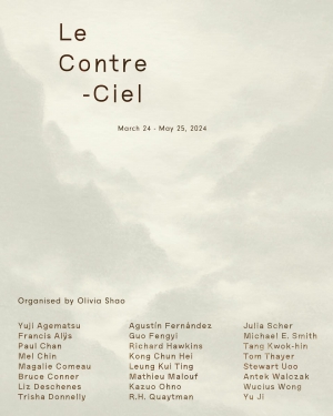 Spanning both floors of the gallery, the exhibition will feature works by Yuji Agematsu, Francis Alÿs, Paul Chan, Mel Chin, Magalie Comeau, Bruce Conner, Liz Deschenes, Trisha Donnelly, Agustín Fernández, Guo Fengyi, Richard Hawkins, Kong Chun Hei, Leung Kui Ting, Mathieu Malouf, Kazuo Ohno, R.H. Quaytman, Julia Scher, Michael E. Smith, Vunkwan Tam, Tang Kwok-hin, Tom Thayer, Stewart Uoo, Antek Walczak, Wucius Wong and Yu Ji.