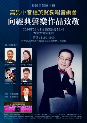 鍾英賢自幼喜愛歌唱藝術,從幼時已跟隨花腔女高音歌唱家丘曉秋女士啟蒙學習聲樂及加入「長風合唱團」三十多年;任多屆幹事包括康樂、男低音聲部長、譜務和現任譜務及康樂幹事。曾在上海音樂學院隨男中音歌唱家王凱蔚老師學習聲樂; 現師隨男低音歌唱家龔冬健老師繼續深造聲樂。