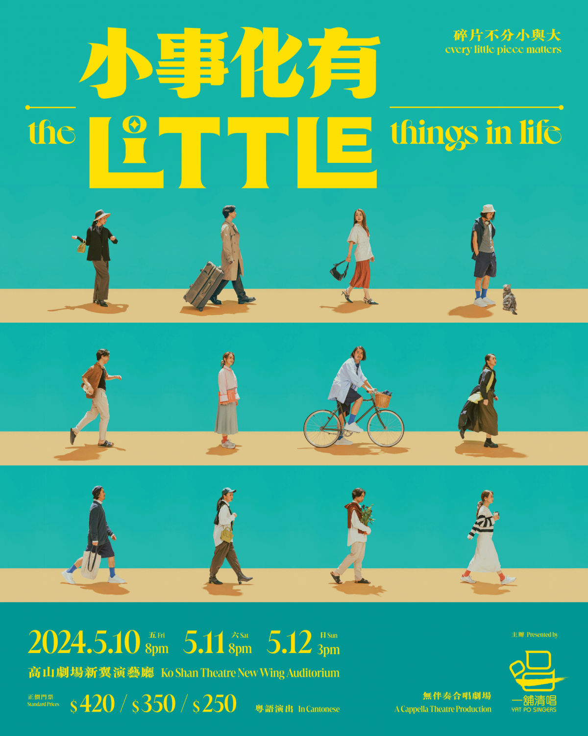 由敢於破格的林俊浩執導、遊走於創編演領域之鄭君熾編劇、一舖清唱聯合藝術總監盧宜均包辦作曲、編曲及合唱指導,加上風格多變填詞人梁栢堅妙筆生花,以嶄新角度與劇場體驗將「小事化有」;豪華演出陣容:張紋嘉、張國穎、馮志佑、孔君蔚、梁天尺、馬顯融、曾浩鋒、黃晞澄及任歷豪,更透過無伴奏合唱,為段段故事添上多層次情感。