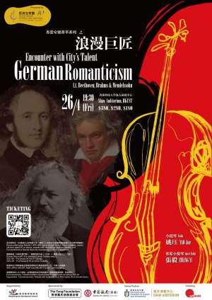 貝多芬、布拉姆斯和孟德爾遜不僅是浪漫時期的代表性作曲家,同時也是三位傑出的德國作曲家。在即將舉行的音樂會中,著名小提琴家姚珏和香港弦樂團將與來自中國的國家一級小提琴家張毅攜手合作,以室內樂形式呈現精彩的演出。