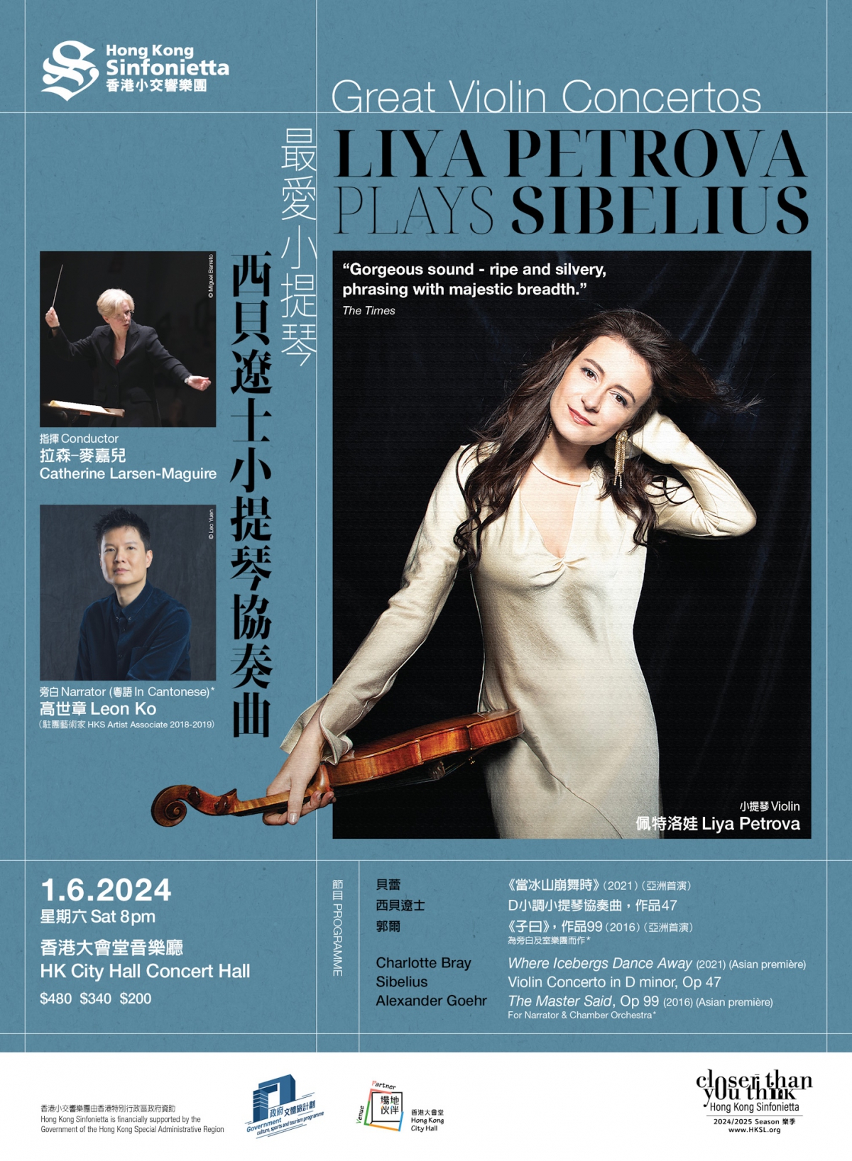 生於保加利亞音樂世家的小提琴才女佩特洛娃,獲《泰晤士報》讚譽她「擁有華麗和像銀光耀目的純淨音色」,她自2016年摘下尼爾森國際音樂大賽冠軍後邀約不斷,曾合作過的樂團包括法國電台愛樂、巴黎樂團、荷蘭電台愛樂樂團等。師從小提琴大師杜美、卡普森、維特哈絲的她,將和英國指揮拉森-麥嘉兒及香港小交響樂團合作西貝遼士的D小調小提琴協奏曲,以堂皇之姿,演繹這首偉大經典。
