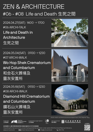 死亡是人生必修課,不過傳統忌諱使我們往往避而不談,鮮有探討當中的建築設計美學。因此,我們希望透過【禪與建築】第六至八站活動 —「生死之間」,以輕鬆的分享、對談、建築導賞和禪修體驗的方式,一同學習如何以一顆禪心去理解生與死,欣賞並體驗建築與禪修的關聯。
