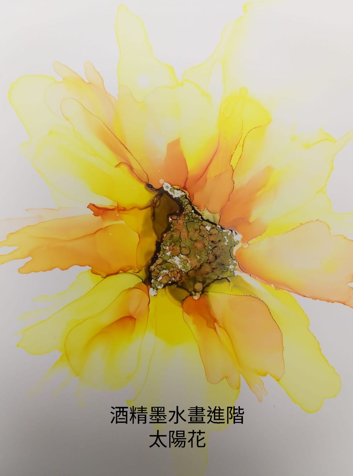 酒精墨水藝術是用風力令酒精流動把墨水散開,創造出不同的效果。酒精墨水畫是一種最具感情特徵及感染力的藝術語言,在專用紙上滴上酒精、顏料及金屬顏料,透過色彩配搭,自然地暈染、擴展、交疊,配合,設計出抽象藝術畫作。色彩不僅僅是點綴生活的美麗,更是繪畫中的語言,讓人愛不釋手!想開始學畫一些精細的花朵:太陽花,你不能錯過這堂進階班,當你懂得畫花朵時,你便會跟「酒精墨水」談戀愛,廢枕忘餐,誓要畫出彩虹!