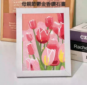 鬱金香的花語是「博愛、體貼、高雅、富貴、能幹、聰穎」。母親節當天為媽媽獻上親手做的鬱金香鑽石畫,表達對媽媽的愛。