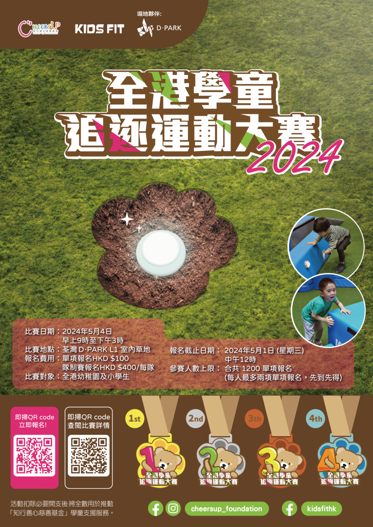 追逐運動是一種集跑步、捉迷藏和障礙賽元素於一身的競技運動。這項運動可以由一名或兩名選手進行,選手需在特別設計的障礙賽道上比賽,目標在 20 秒內完成任務,既刺激又有趣。我們期望學童能在追逐遊戲中發展體能,並從中培養運動興趣。同時,我們提供了一個全新平台供各健兒切磋最簡單的運動技能,展示他們令人難以置信的速度、敏捷和策略。我們深信這是一項既有趣又具挑戰性的兒童運動,有助於培養孩子們的身體協調性、團隊精神和自信心。