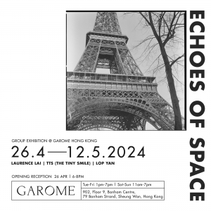 GAROME泇弄誠意呈獻【Echoes of Space - 群展】。是次展覽與三位香港藝術家們合作,當中包括:攝影師Laurence Lai、水墨藝術家Lop Yan和藝術家TTS (the tiny smile)。三位藝術家分別來自不同的世代和藝術背景,他們將各自呈現一系列探索抽象和空間重要性的作品,邀請觀眾沉浸在藝術語言的永恒流動中。