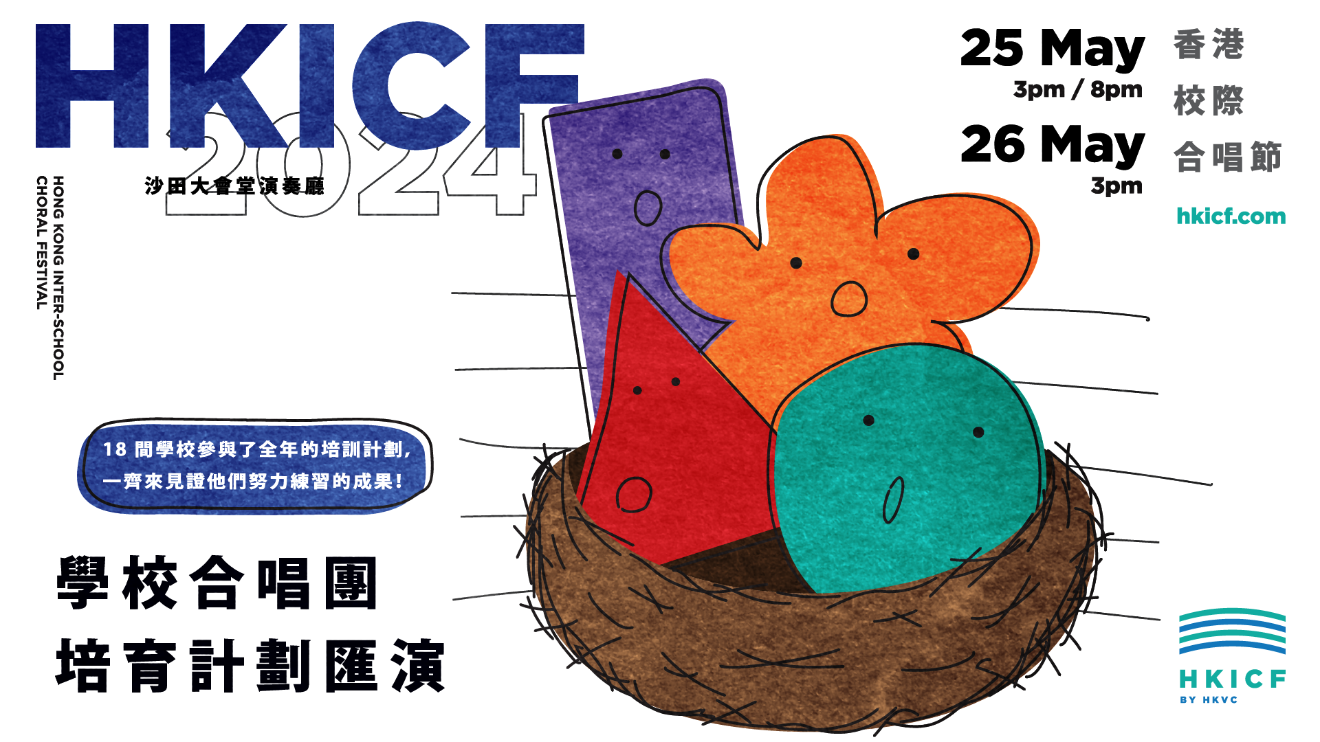香港校際合唱節延伸計劃 — 「學校合唱團培育計劃」專場音樂會將於五月25至26日於沙田大會堂演奏廳舉行。藉着師友配對支援、教師工作坊以及為合唱團提供演出機會,我們希望培養學校合唱團成長。今年,在策略發展伙伴東華三院的支持下,計劃擴展至 19 間學校共 54 位老師參加!