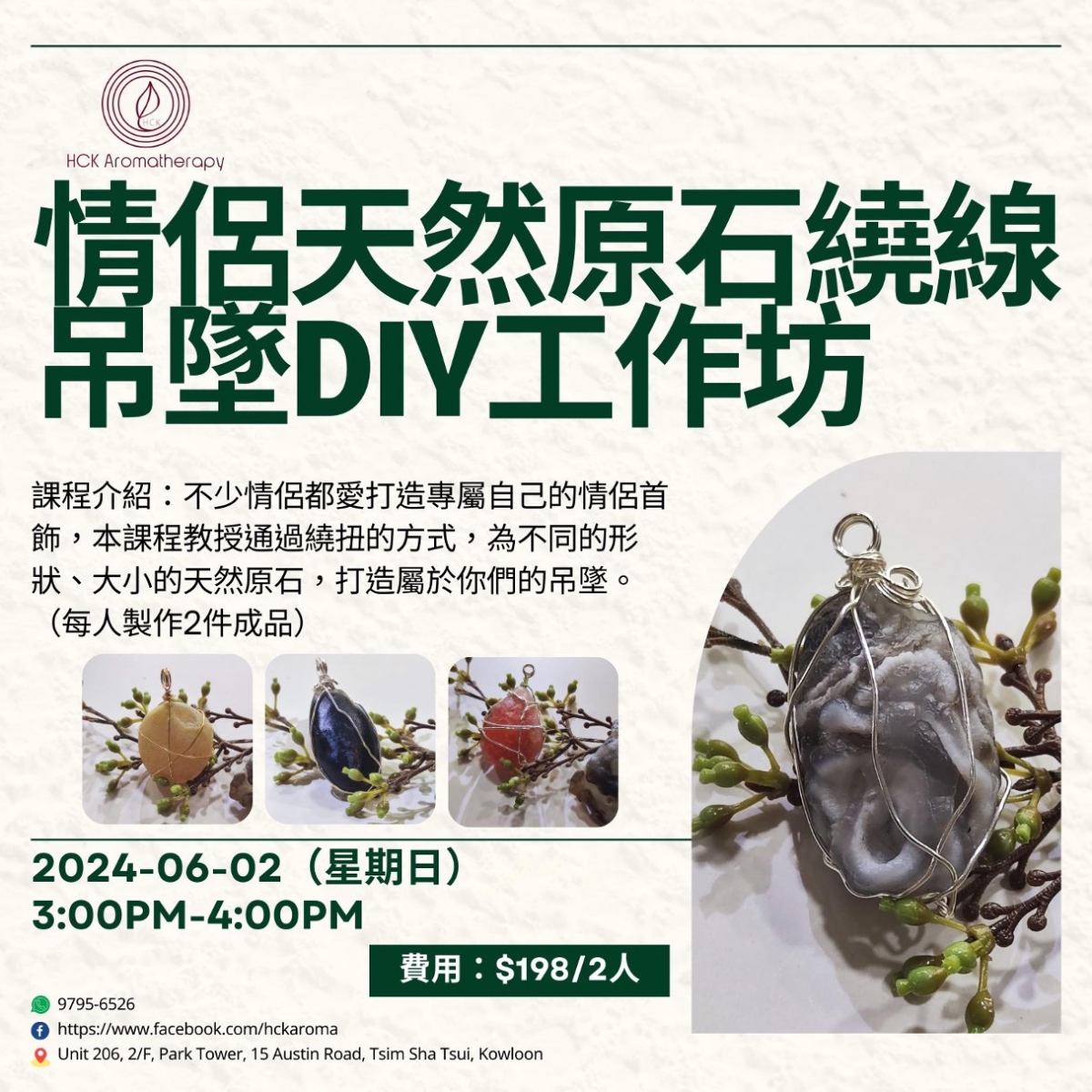 情侶天然原石繞線吊墜DIY工作坊