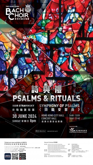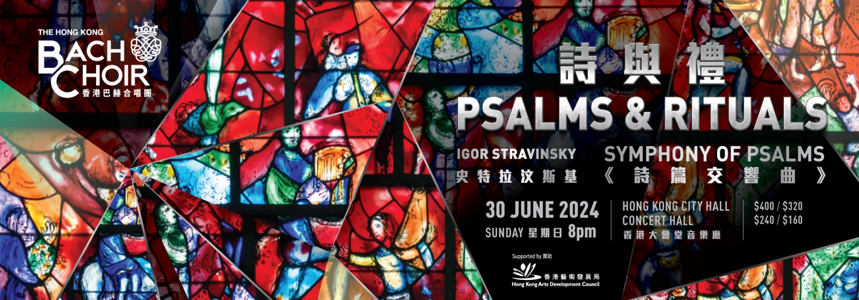 香港巴赫合唱團和樂團上演來自十六、二十及二十一世紀隆重而喜悅的音樂,帶我們再次感受賦予生活意義的公共和個人儀式。演出曲目包括史特拉汶斯基、傑蘇阿爾多、馬麗・珍・利奇、盛宗亮的作品,以及香港作曲家鄧慧中為本次音樂會所作的全新作品。何博文指揮。